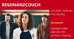 Am 09.02. laden wir Sie ein, nach dem Film ganz zwanglos vor Kino 3 in Gauting auf der RESONANZCOUCH über den eben gesehenen Film zu reden, zu ratschen, zu lachen oder zu diskutieren. Wir freuen uns auf Ihr Kommen.